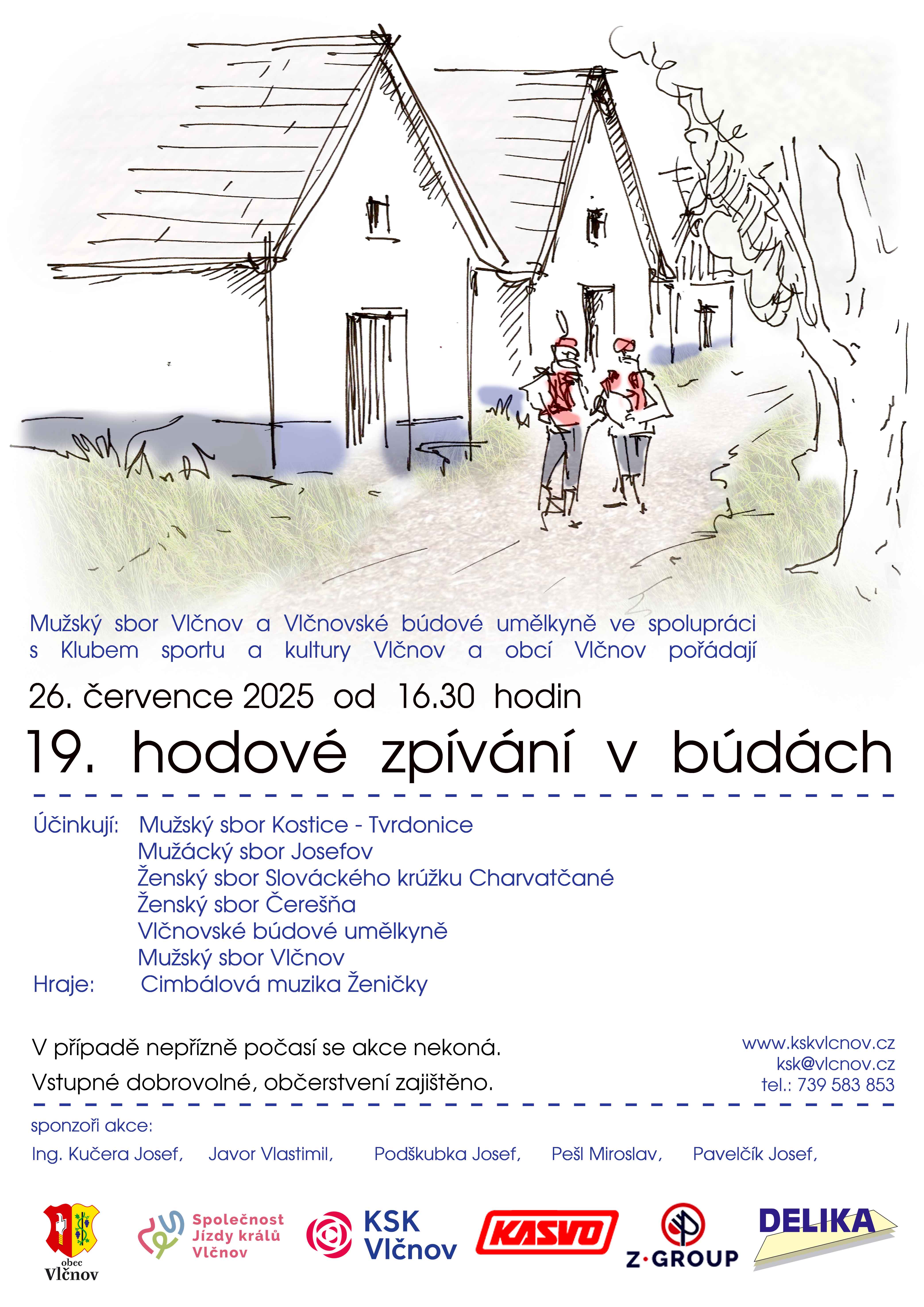 Všechny srdečně zveme na 1. Vlčnovské koštování ve vlčnovských búdách, které se koná 10. května 2025 od 14. hodin.